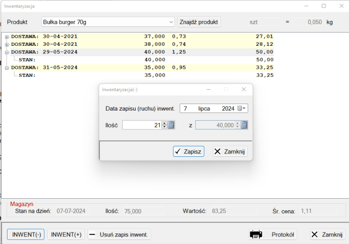 Wynikiem inwentaryzacji może być potrzeba skorygowania na + lub - ilości danego produktu